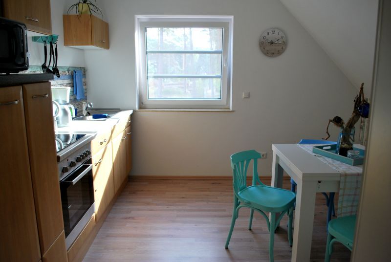 Die mit Liebe eingerichtete, neue moderne Ferienwohnung mit Balkon befindet sich auf einem Waldgrundstück nur wenige Gehminuten vom Scharmützelsee entfernt im Ortsteil Saarow Strand. Hier können die Gäste die Ruhe und Natur bei Fahrradtouren oder Wanderungen genießen. Das Ortszentrum mit der SaarowTherme und den Einkaufsmöglichkeiten ist in wenigen Autominuten zu erreichen. Die 65 m² große Wohnung für 2-4 Personen liegt im Obergeschoss einer Doppelhaushälfte der Vermieter. Eine Parkfläche für das Auto auf dem Grundstück ist vorhanden.