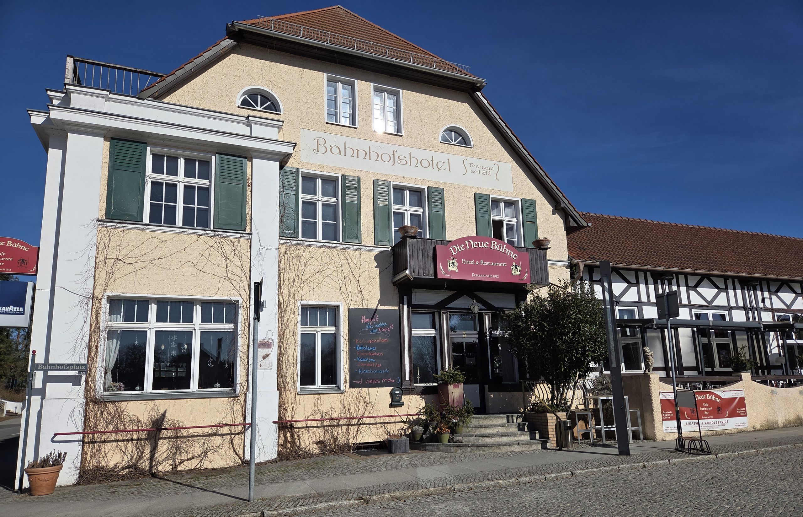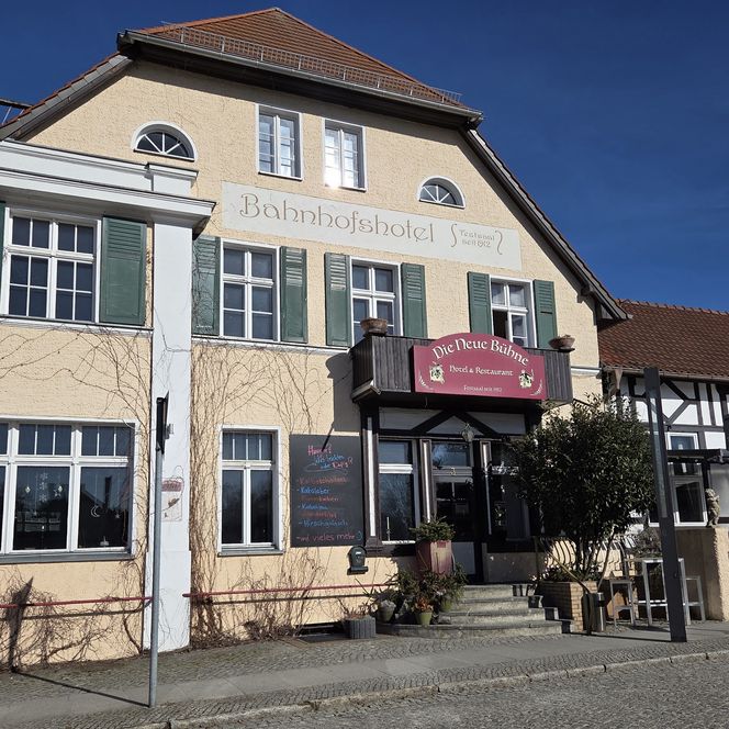 Direkt am historischem Bahnhof von Bad Saarow gelegen, liegt das Bahnhofshotel & Restaurant “Die Neue Bühne”.